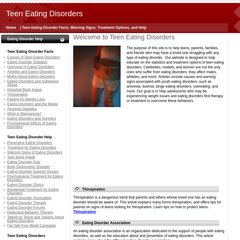 Topics: Causes Of Teen Eating Disorders, Overview Of Eating Disorders, Athletes And Eating Disorders, Eating Disorders And Substance Abuse, Thinspiration, and Fasting For Weight Loss.